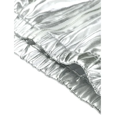 Shimmering holographic and metallic fabric is unique and shows your character. It’s also outstanding among the public. Add an instant layer of partygoing charm to any look with this jacket in the shimmering metallic, which is your new warm-up must-have item. A bold metallic design lends a distinctive style to this jacket featuring a hood to stave off the breeze. This jacket can easily be worn every day with any outfit! The zipper in the jacket can also be easily dressed up or down. Simply pair it with a t-shirt or camisole and shorts for day toāāāā night, and you will be a mostly bright one.