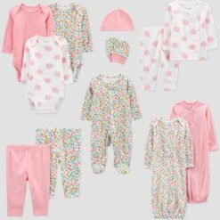 Carter's Just One YouĀ® Baby Girls' 4pk Polka Dot And Floral Print Pull-On Pants – Green/Pink/Gray