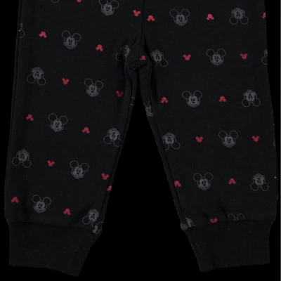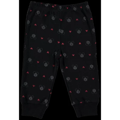 - Featuring a modern Mickey Mouse striking a happy pose on bodysuit; Mickey peaking over edge on bib; All-over Mickey head and face print on pants