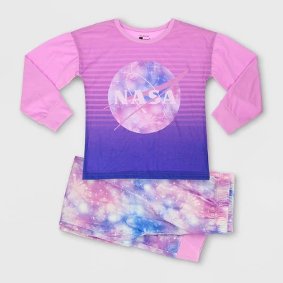 Encourage your young space enthusiast to dream big with this NASA 2-Piece Pajama Set. This sleep set includes a pink long-sleeve tee with the “NASA” logo printed across the pink-and-purple striped front and a pair of pajama pants brightened with a matching tie-dye print. Made with soft fabric, this pajama set offers comfort, while the ribbed cuffs help provide a stay-put fit.