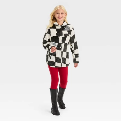 Add some nostalgic movie-magic vibes to your child’s wardrobe with this Disney The Nightmare Before Christmas Ragdoll Sally Woobie Shacket. The shirt-style jacket has a collared front, a full-length button-down placket, long sleeves with buttoned cuffs, and two faux pockets on the chest with flaps. Featuring a classic black-and-white buffalo plaid pattern, the long-sleeve shacket is accented with the “Tim Burton’s The Nightmare Before Christmas” logo and Jack Skellington’s image for an elevated look. Plus, the midweight faux-shearling construction adds cozy warmth.