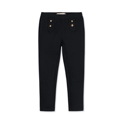 Our ponte pant with button plackets is a flattering and polished silhouette that she’ll want to wear day in and day out. Our soft organic cotton blend ponte knit is thicker than the average legging and offers easy pull-on functionality with a flat elastic waistband. Features a slim fit and gold shank buttons at the front plackets for just the right amount of shine.
