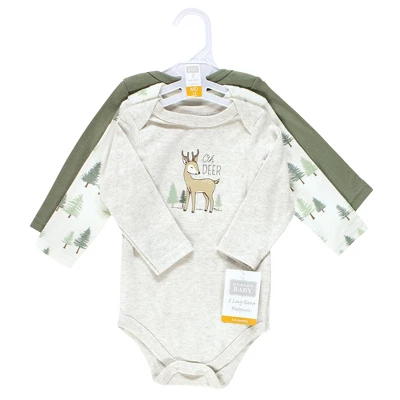 Hudson baby long-sleeve bodysuits are an essential part of baby’s wardrobe. Our bodysuits feature adorable prints, embroideries, stripes and solids and provide a comfortable base layer that’s great for pairing with pants, shorts, or even wearing under outfits. Our bodysuits are comfortable and cozy for all-day, everyday wear for your little one.