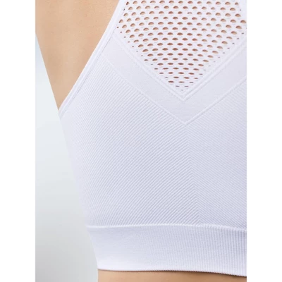 The most comfortable sports bra is here! This racerback bra is designed with moisture wicking fabric to keep you cool and comfy during your favorite low-impact activities. The Lea is the perfect combination of comfortable and supportive with its seamless construction and wirefree band. Cooling fabric technology helps to keep you cool Textured v-neck detailing adds style Double layer cups for support and modesty Wirefree band provides light support Removable pads allow for versatility.