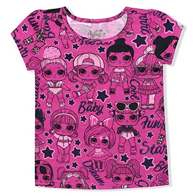 Push her to strut in the beat of her own DJ with unique and outrageous designs from LOL Surprise! Inclusive of 3 eye-catching tees that feature Neon Q.T., Court Champ, Cherry, Honey Bun, and more in eye-catching prints. Watch her stand out and comfortably express herself by adding 3 more Millennial-friendly garments from LOL!