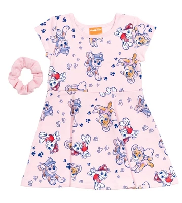 - Nickelodeon Officially licensed Paw Patrol little girls cute and stylish short sleeve dress and scrunchie