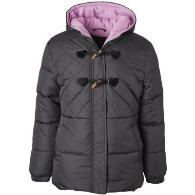 - Hooded Girl’s mixed quilt puffer jacket with toggle closure