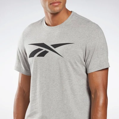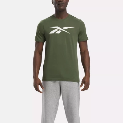Wear your athletic pride on your sleeve. This men’s Reebok graphic tee puts your respect for sport on your chest for all to see. It has a slim fit for a stylish look. The soft cotton jersey is comfortable for all-day wear. Our cotton products are entirely sourced through sustainable cotton farming and are made with at least 50% Better Cotton.