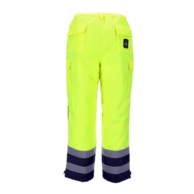 When the workday demands staying warm, dry, and visible, our HiVis Insulated Waterproof Pants are your ultimate companion. These lightweight work pants are designed to withstand harsh winter conditions down to 0°F while keeping you comfortable and protected.With 120g polyester insulation and a fleece-lined polyester oxford outershell, these pants offer superior warmth without weighing you down. The waterproof and wind-tight finish ensures you stay dry and shielded from the elements.Featuring a comfort-stretch elastic waist with belt loops, these pants provide a flexible fit that moves with you. The reinforced heels enhance durability, ensuring long-lasting performance. Equipped with 2 cargo pockets and 2 back pockets, you’ll have ample storage for your essentials.Safety is important, which is why these pants have high-visibility colors and 2″ reflective tape, meeting ANSI Class E standards. Stand out and stay visible even in low-light conditions.