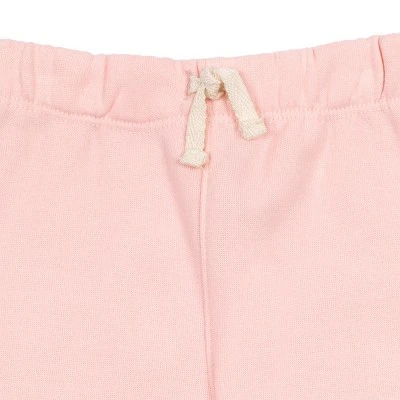 - Drop shoulder sleeves; Jogger style sweatpants; Elastic waist for a better fit; Twill tape bow on pant waist