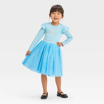 Your little Frozen fan will love dressing up like their favorite princess in this Frozen Elsa Tutu Dress. This long-sleeve tulle dress fashioned in a blue hue features a fun print of Elsa on the bodice with fluttery frill details on the shoulders, a sequin mesh skirt and a silver band on the elastic waist for a touch of shine. The lightweight fabric with soft lining offers comfy wear, while the pullover round neck allows for fuss-free dressing.