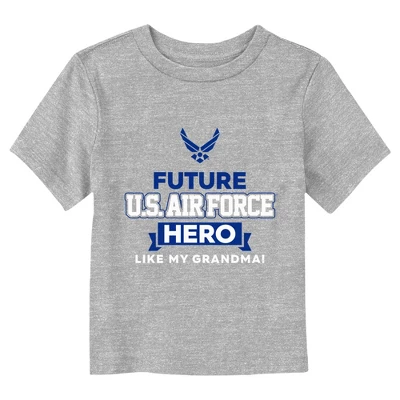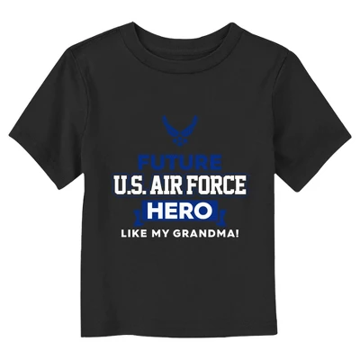 - The smallest family members are also the most stylish with this new toddlers’ t-shirt that is perfect for every occasion! Featuring the phrase: “Future U.S. Air Force Hero like my grandma!” in blue and white lettering across the front.
