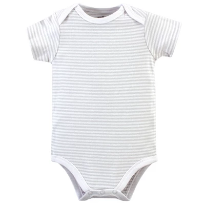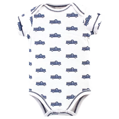 Touched by Nature offers soft organic cotton clothing for the gentlest touch on sensitive and delicate baby skin. Our organic bodysuits feature adorable prints, embroideries, stripes and solids and provide a comfortable base layer that’s great for pairing with pants, shorts, or even wearing under outfits. Our bodysuits are comfortable and cozy for all-day, everyday wear for your little one. Our bodysuits are an essential part of baby’s wardrobe. Touched by Nature Baby Boy Organic Cotton Bodysuits 5pk, Truck is a great baby essentials set for your little one.
