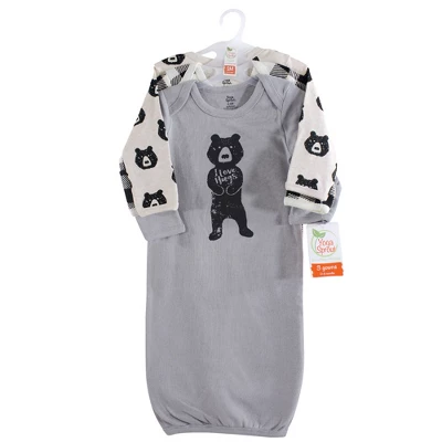 Yoga Sprout cotton gowns are super comfortable and cozy and feature playful patterns for sweet dreams. An elastic band at the bottom and a lap neck make dressing and diaper changes simple. Based on customer feedback, we would like to share size recommendations for you. Our preemie gowns are suitable for preemies and newborns from 6 to 9 pounds. Our 0-6 month gowns run a bit larger so they can last you up until your baby turns 6 months old. Our gowns are made of 100% cotton, so some shrinking should be expected. Yoga Sprout Baby Boy Cotton Long-Sleeve Gowns 3pk, Bear Hugs is a great baby essentials set for your little one.