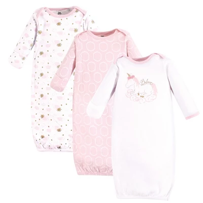 Yoga Sprout cotton gowns are super comfortable and cozy and feature playful patterns for sweet dreams. An elastic band at the bottom and a lap neck make dressing and diaper changes simple. Based on customer feedback, we would like to share size recommendations for you. Our preemie gowns are suitable for preemies and newborns from 6 to 9 pounds. Our 0-6 month gowns run a bit larger so they can last you up until your baby turns 6 months old. Our gowns are made of 100% cotton, so some shrinking should be expected. Yoga Sprout Baby Girl Cotton Long-Sleeve Gowns 3pk, Unicorn is a great baby essentials set for your little one.